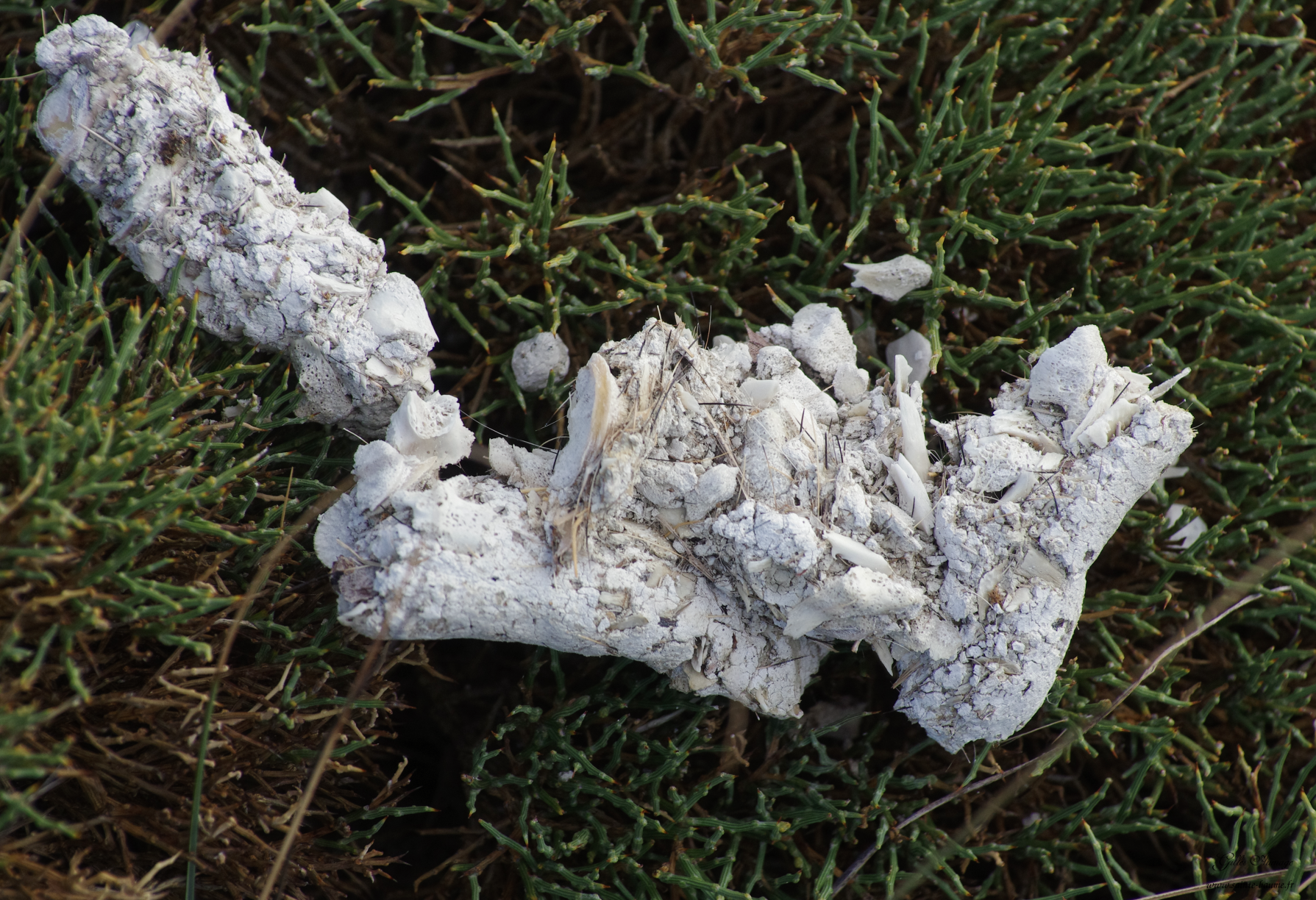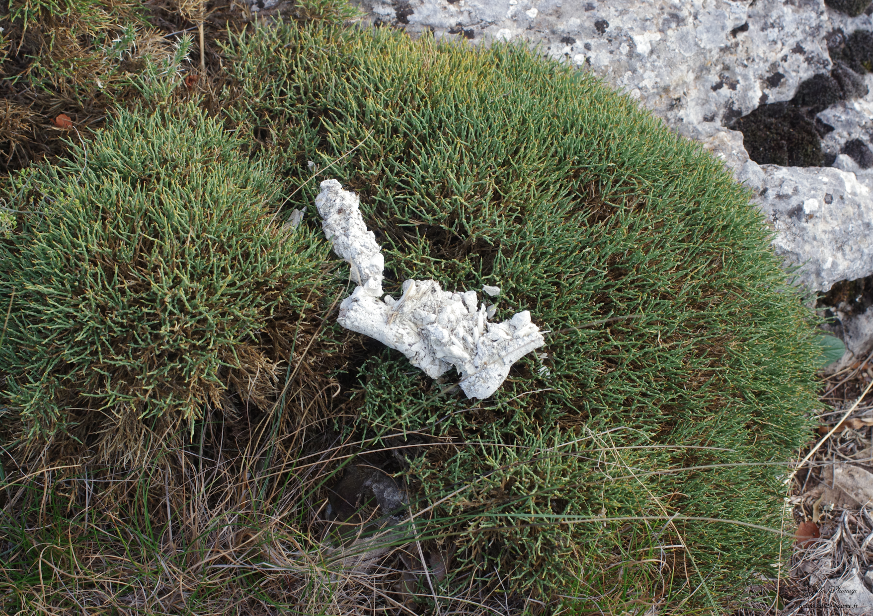Puis passage par le Pas de la cabre. J’ai trouvé une crotte de Loup (Lupus lupus) sur un genêt de Lobell. Les os sont bien visibles et broyés par les machoire puissante du carnassier.
