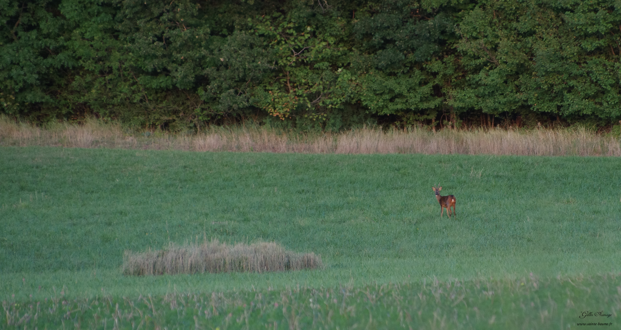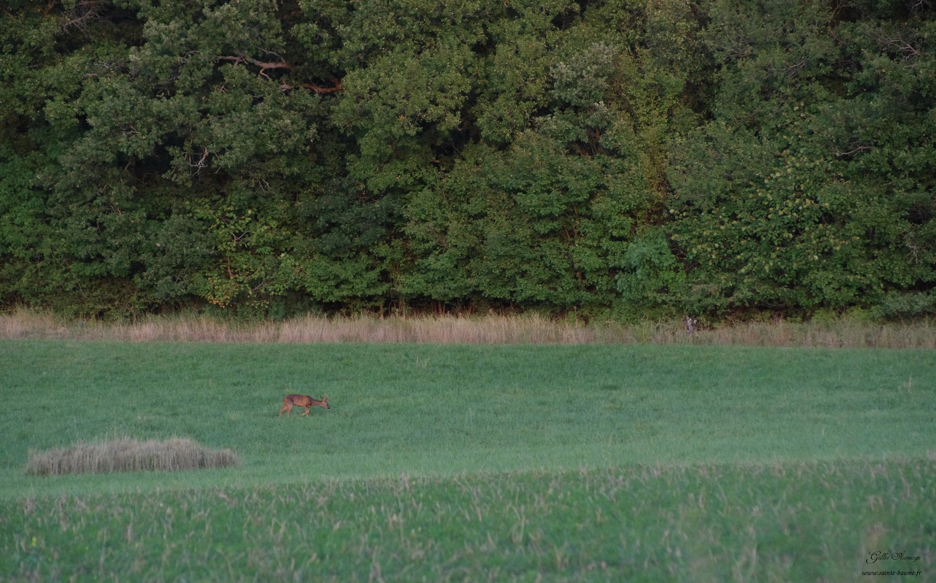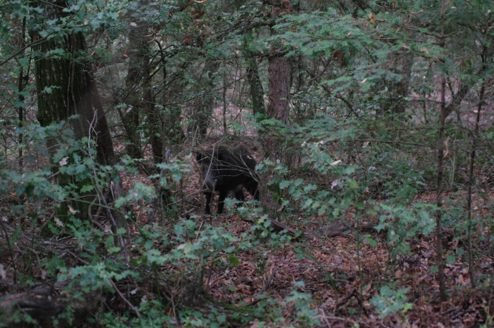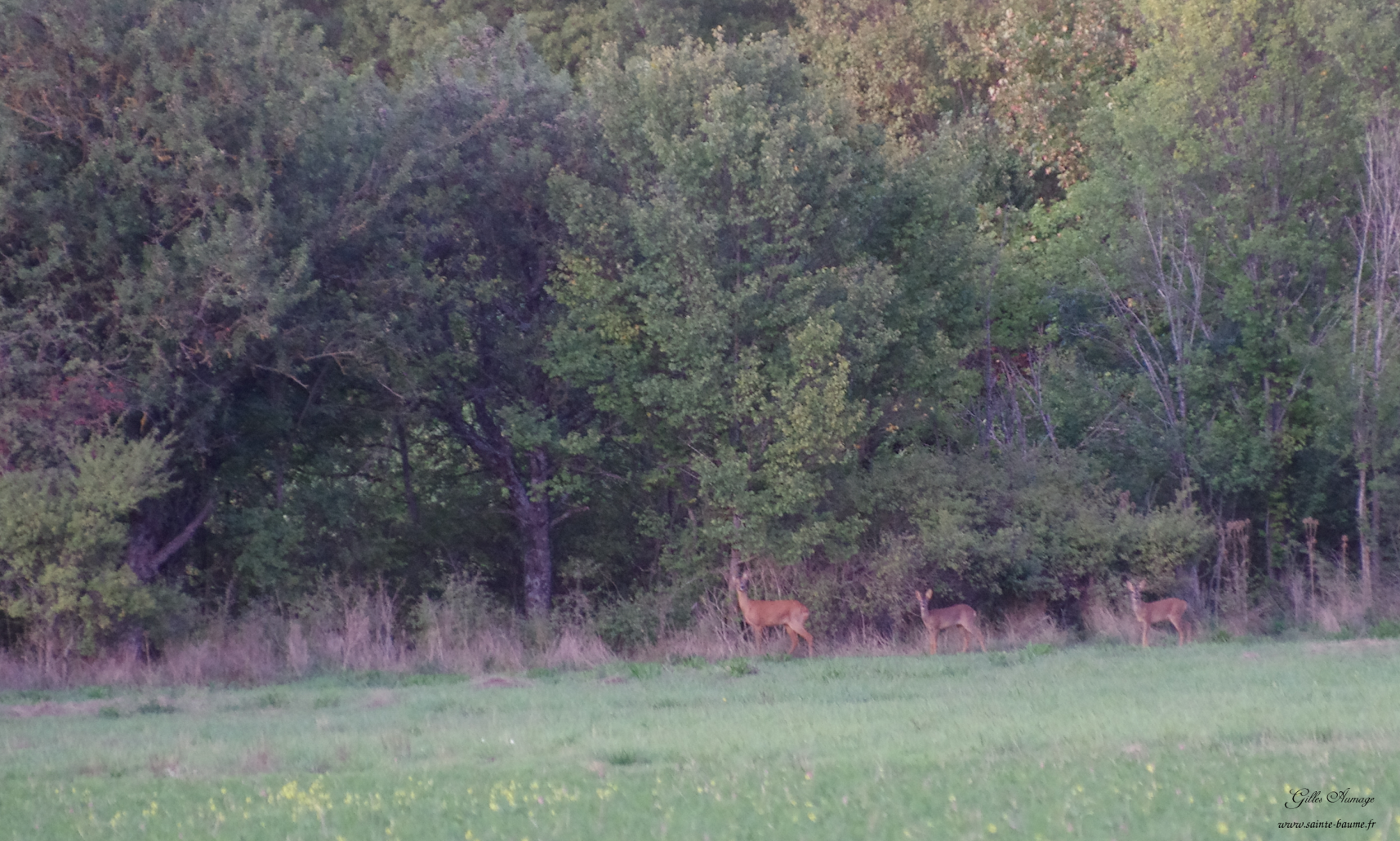En redescendant un Sanglier dans la pénombre et des chevreuils dont une mère et 2 jeunes.